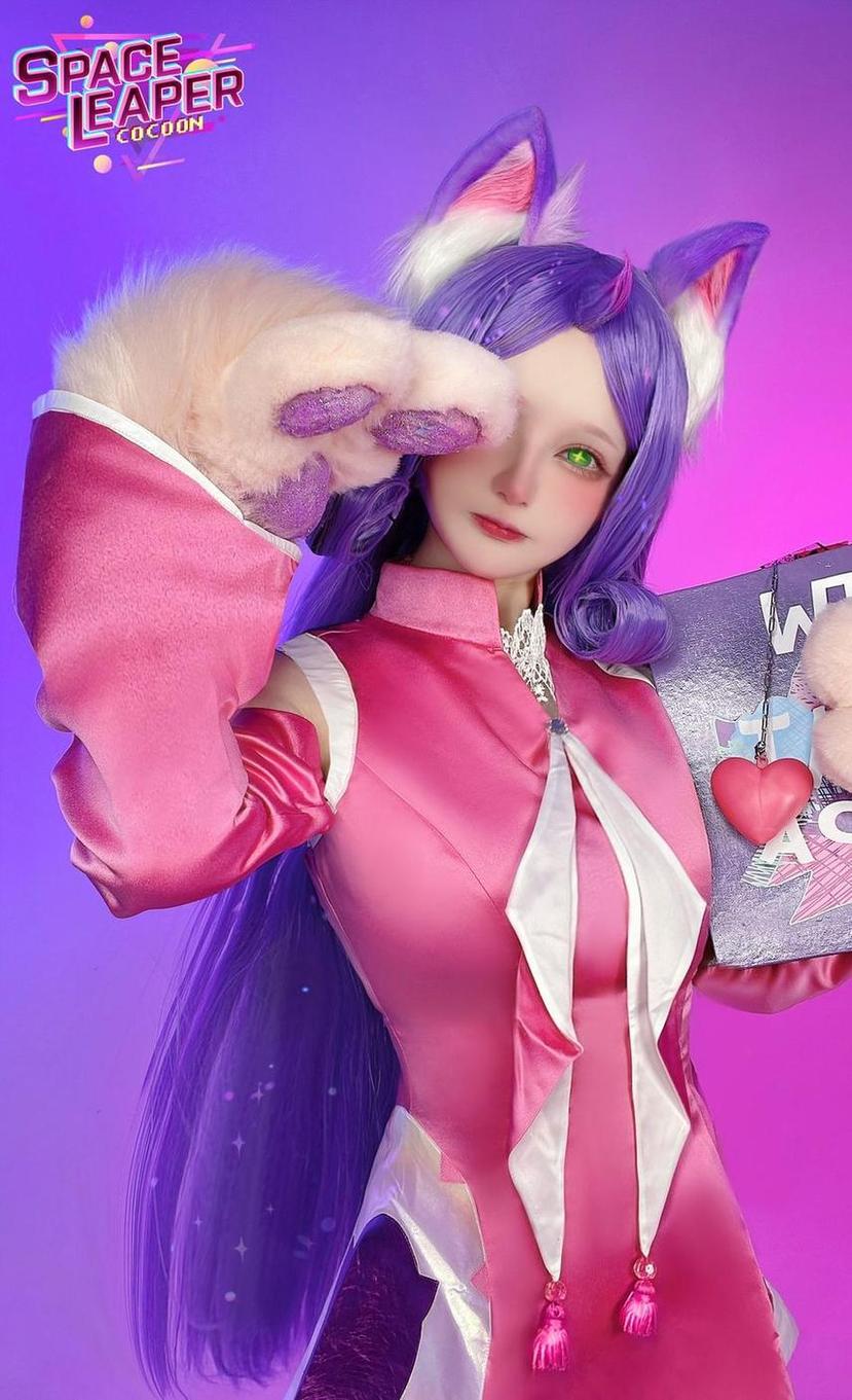 身披着闪闪发光的紫色服装,她手上的一把古琴仿佛注入了灵魂一般,而千夜未来最引人瞩目的作品莫过于她cos的实力派英雄-琴女,展现出不一样的视觉感受。每一次弹琴,凭借着自己的演绎使得这个角色更加生动具体,使得整个角色更加富有张力。